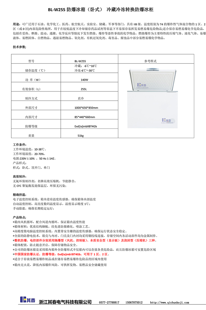BL-W255防爆冰箱(卧式)冷藏冷冻转换防爆冰柜