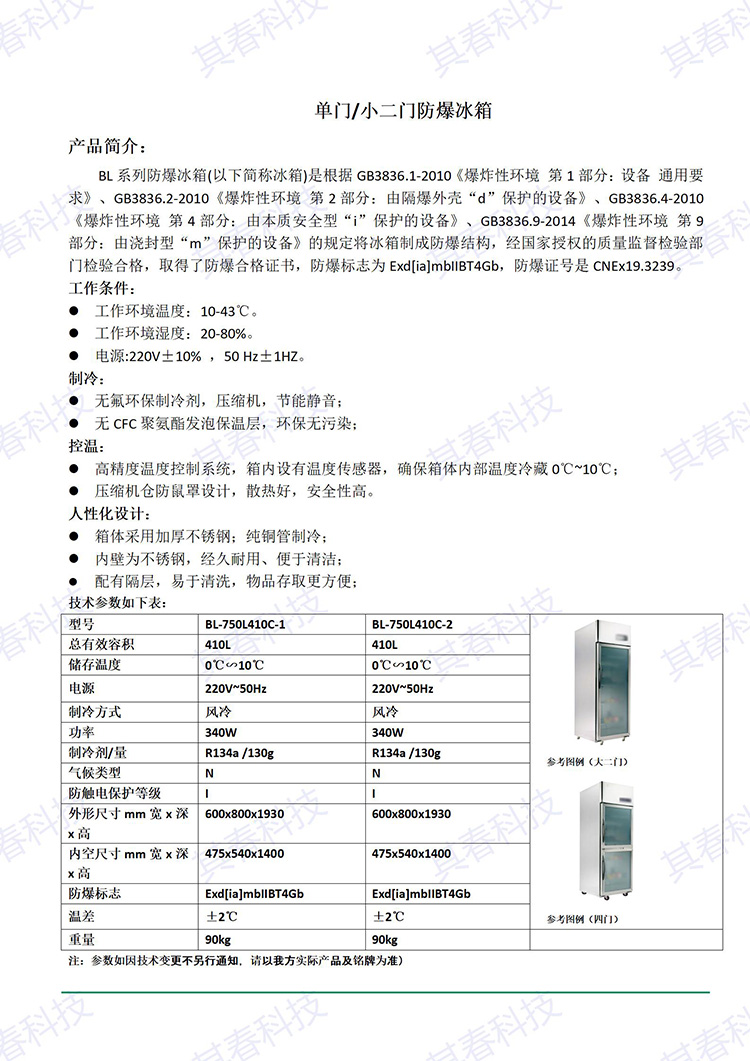 BL-750L410C-2防爆冰箱冷藏